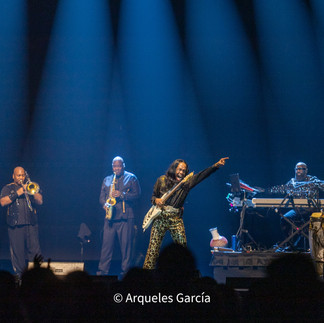 Entre rastas perfectas, una presencia escénica poderosa y una ecualización impecable, el show fue una cátedra de virtuosismo: metales precisos, bajo contundente, falsetes que flotan en el aire y una banda que parece desafiar el tiempo. En tenis, tacones o bastones, todos bailaron. No había escapatoria posible.